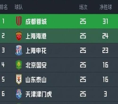 中超最新积分榜:海港32绝杀登顶,蓉城33浙江,申花61排第3 -